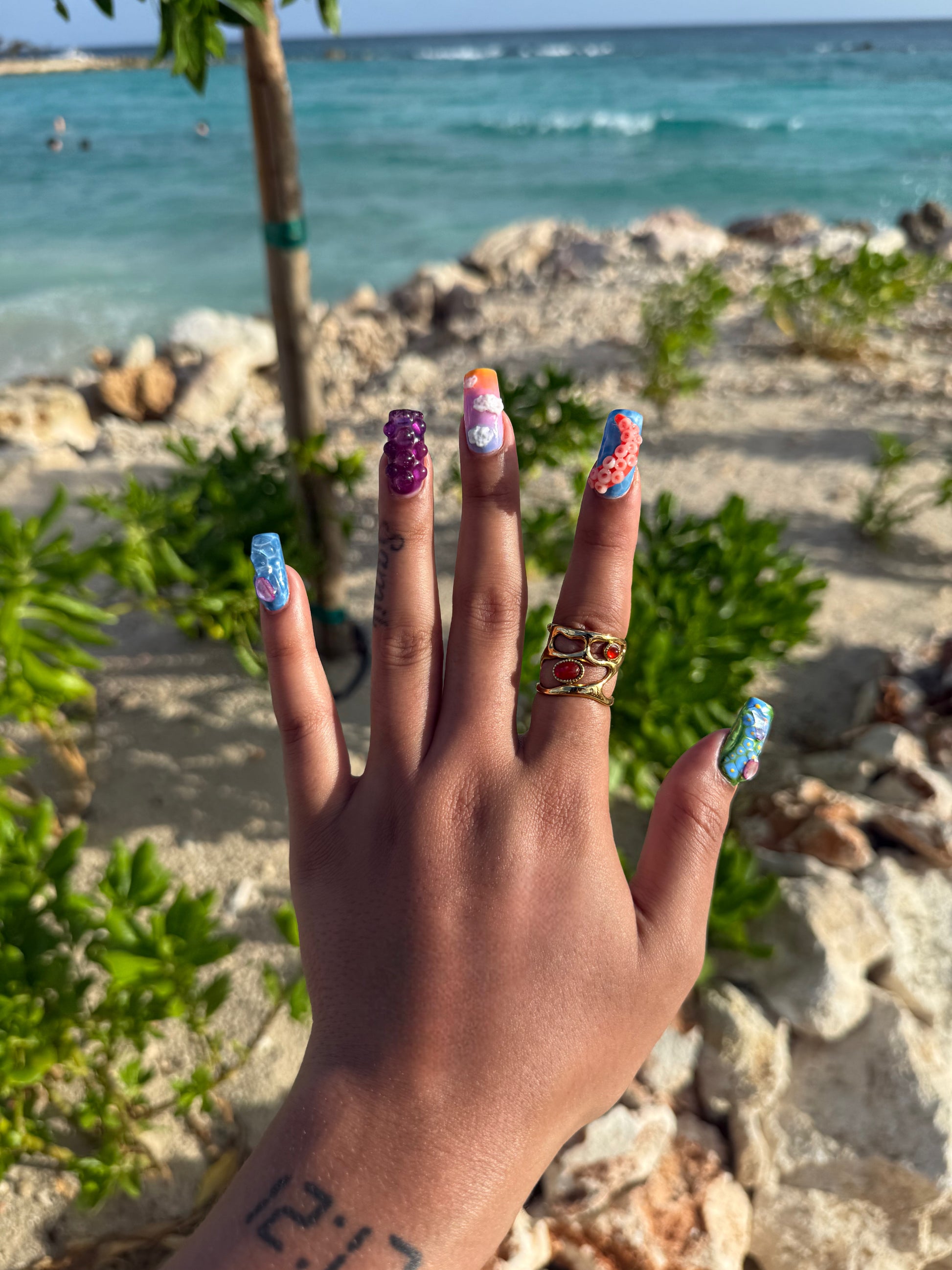 The Golden Brew ring features a stunning stainless steel band with a radiant gold finish. The design is adorned with two miniature brownish stones, reminiscent of the rich tones of freshly brewed coffee.