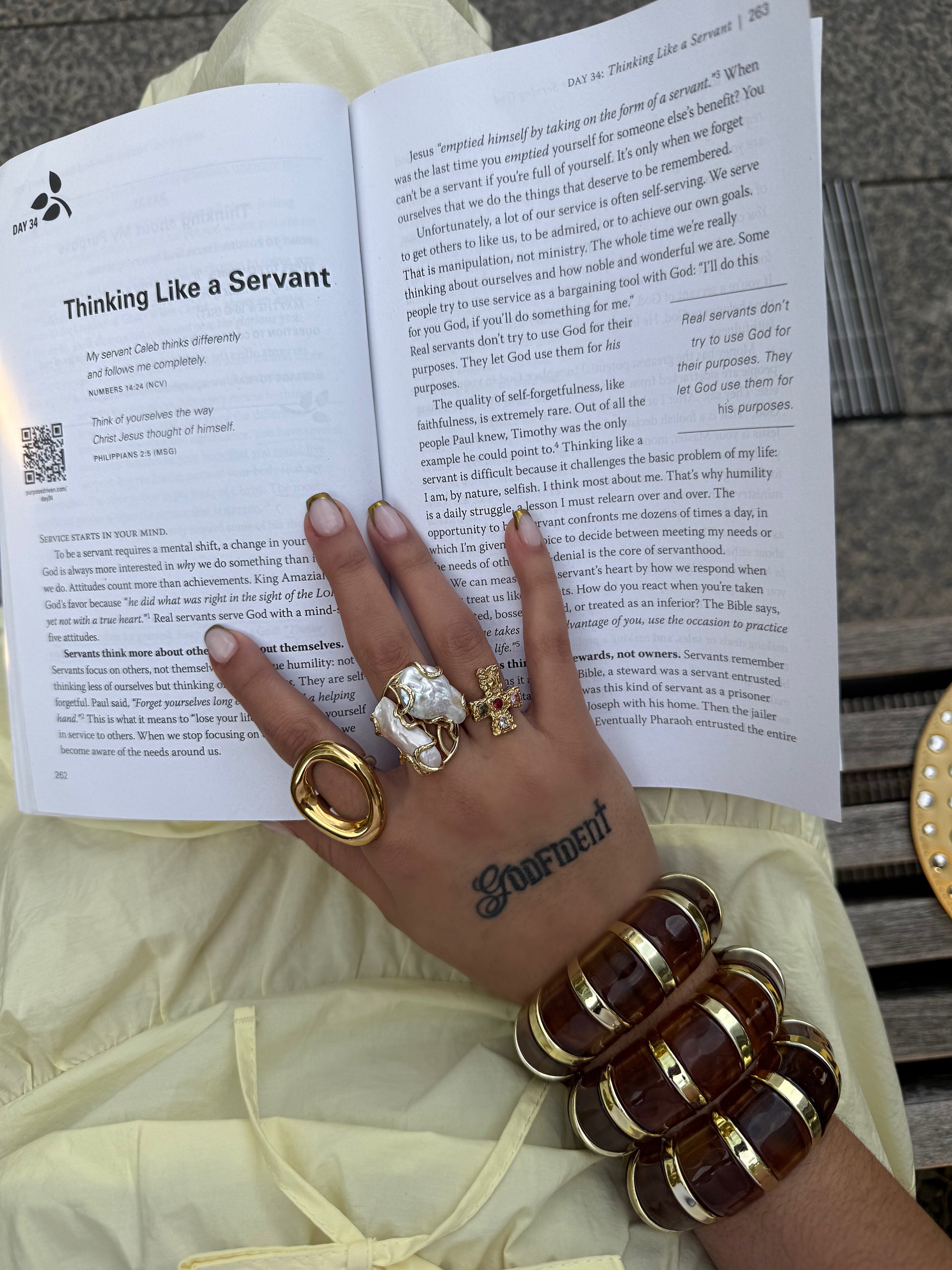 Our Mar de Oro Ring reflects an oceanic golden beauty, crafted from fresh water pearls coated in 18K Gold.